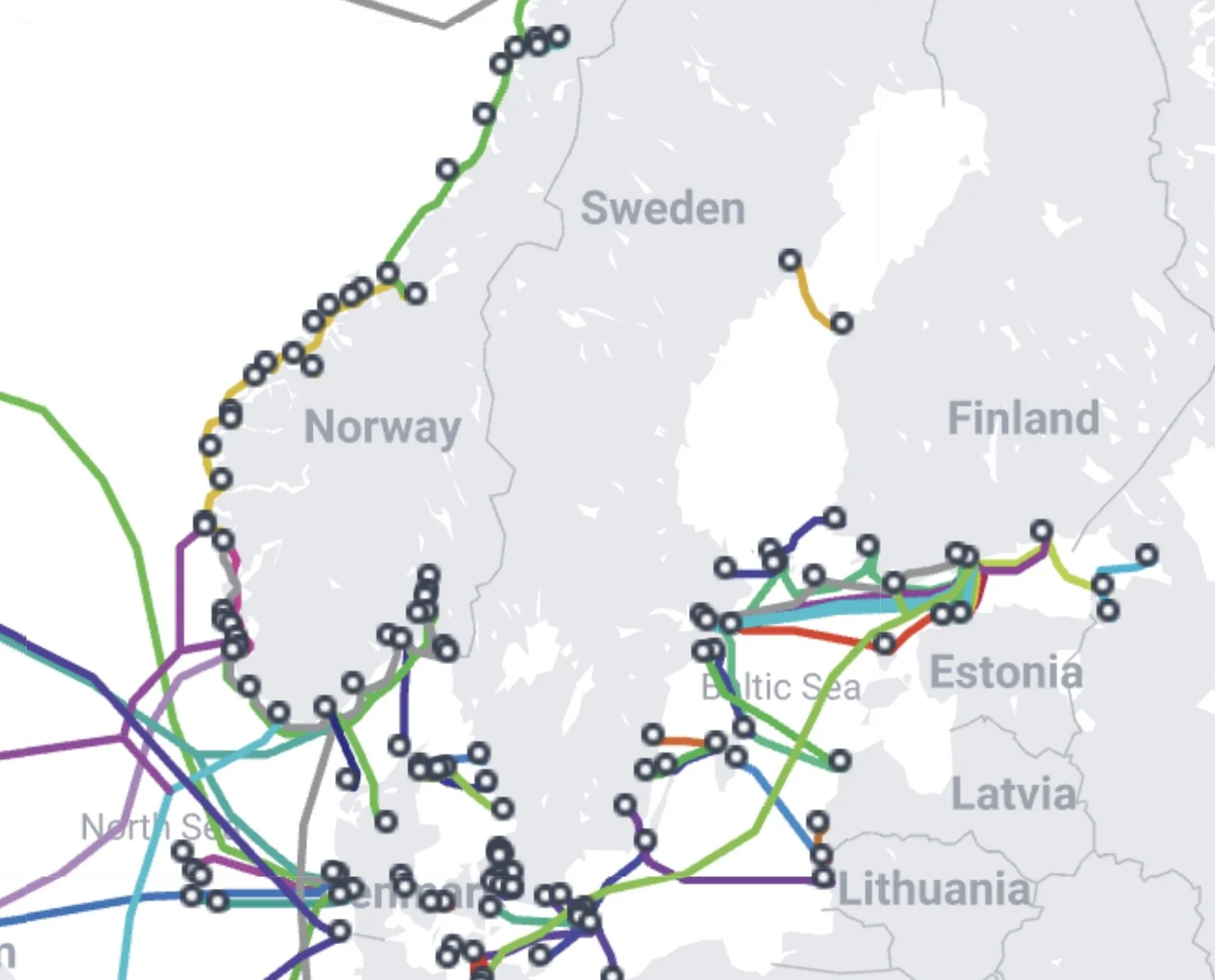 Signal 04 (Norway) centers on the dense mesh of submarine cable systems that fringe the Norwegian coast, embedding the region within the digital currents of the North and Baltic Seas. As a gateway to the Arctic, Norway anchors the infrastructural frontier of future polar data routes. Linking Denmark, Sweden, Finland, Estonia, and beyond, the cables sketch the edge of land through loops and convergences that ripple across the sea. Tan Mu reimagines technical infrastructure as a poetic geography, revealing the contours of invisible networks.