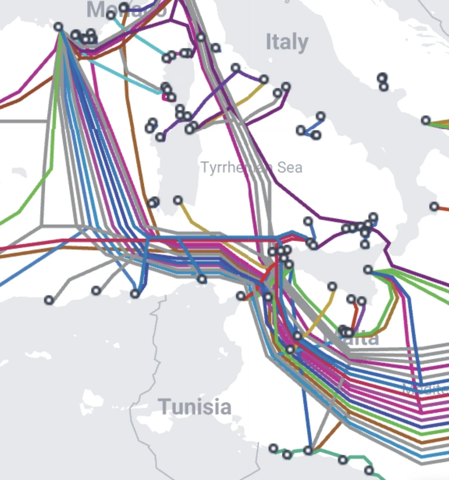 Signal 08 (Italy) traces the intricate convergence of submarine fiber optic cables—including key systems such as SeaMeWe-4, Unitirreno, and Blue—which intersect at Sicily, Malta, and southern Italy. These invisible pathways, extending from Africa, the Middle East, and Southern Europe, recast the Mediterranean from a historical trade hub into a vital corridor for today’s global flow of data. Tan Mu reimagines this technical geography as digital constellations, with the Tyrrhenian Sea transformed into a starry canvas revealing the hidden architecture of contemporary information networks.